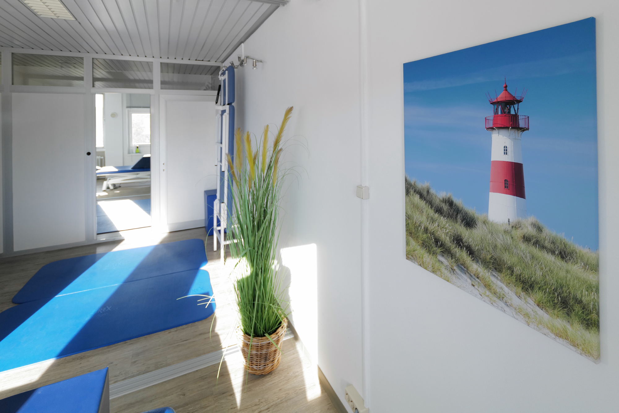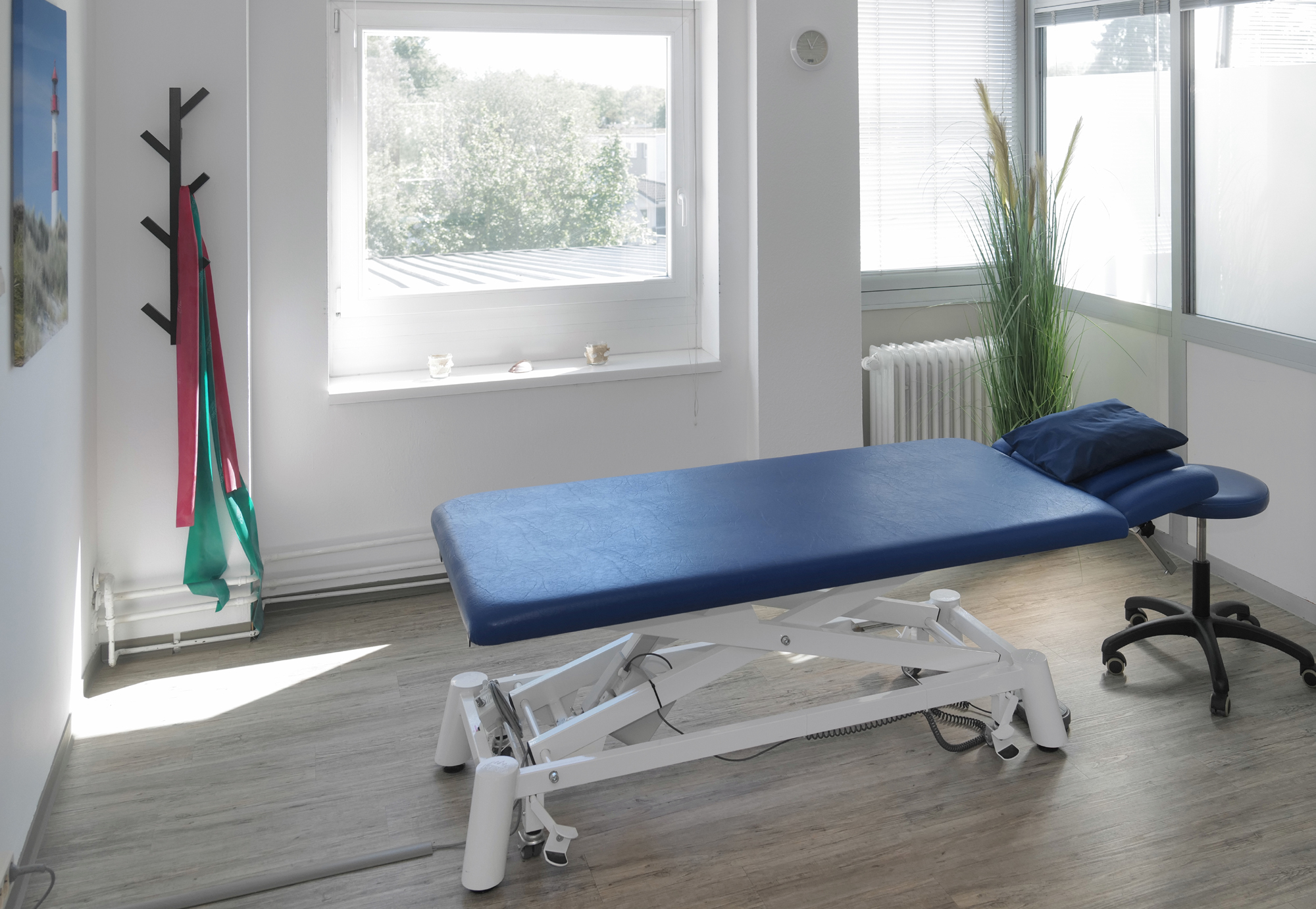 Die Praxisräume Wir arbeiten in verschieden großen Therapieräumen. Alle unsere Räume sind hell und haben Platz für die aktive und passive Therapie.